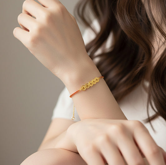 18K Gold Shining Five Emperors Coins Calabash Gourd String Bracelet