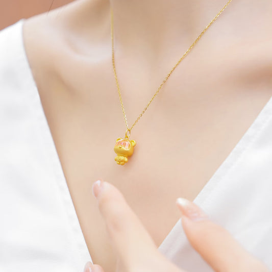 First Series 24K Gold Temperature Color Change Enamel Love You Bear Pendant