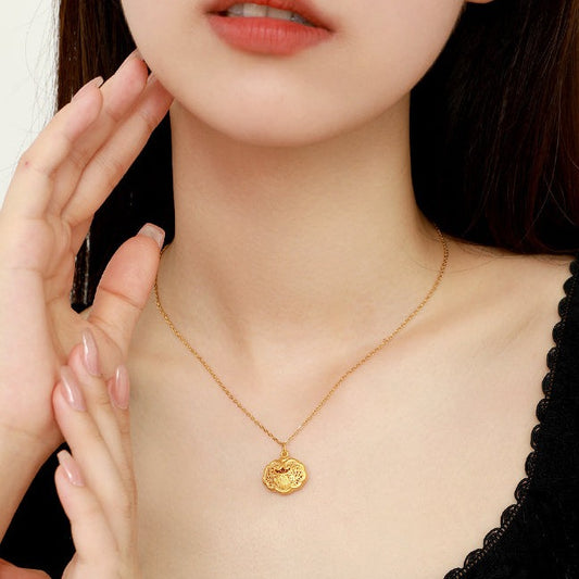 24K Gold Auspicious Clouds Ruyi Lock Necklace Pendant