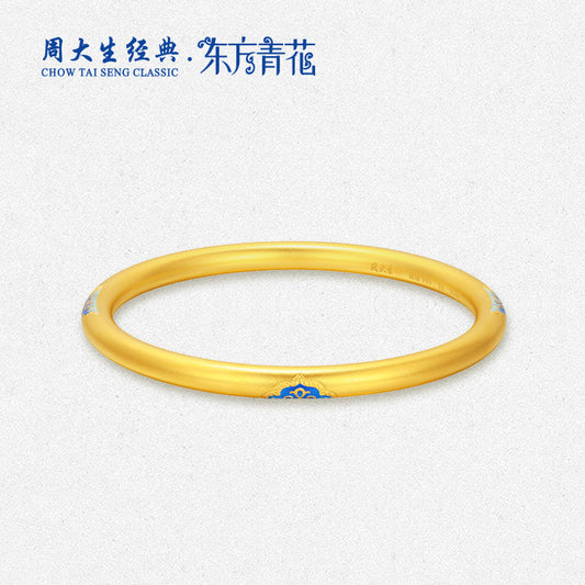Oriental Blue and White Series 24K Gold Ruyi Pattern Bangle