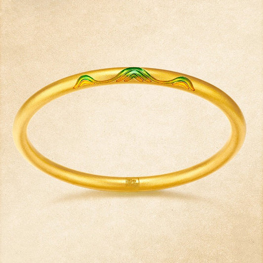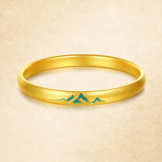 A Grand Panorama of Rivers and Mountains Series 24K Gold Enamel Hammer Pattern Bangle