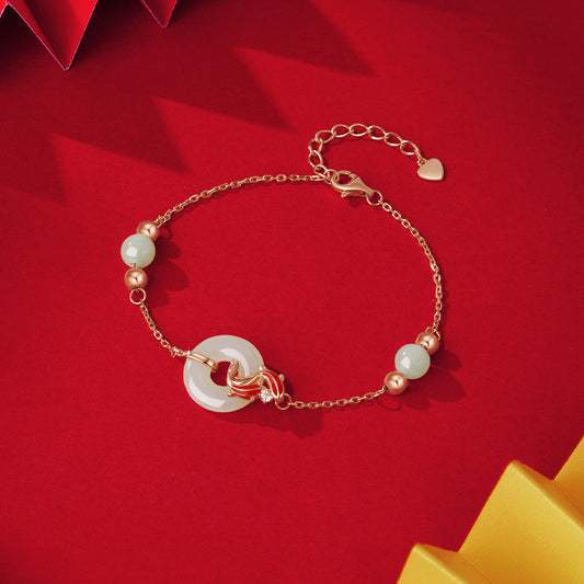 S925 Silver Hetian Jade Koi Ping An Buckle Bracelet