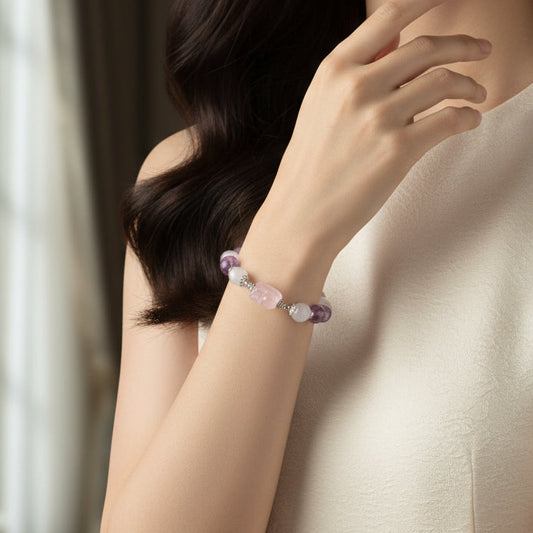 Silver Lucky Pixiu Piyao Chalcedony Purple Crystal Beaded Bracelet