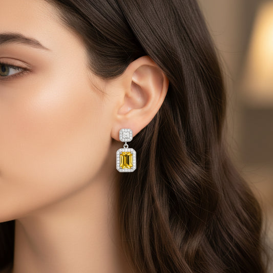Gold Plated Silver Yellow Hoop Dangling Earrings