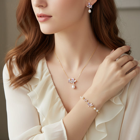 Silver Pearl Wisteria Flower Shining Jewelry set
