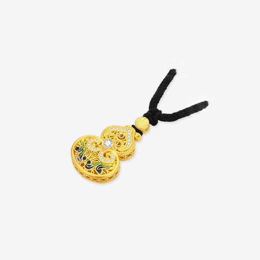 24K Gold Filigree Craft Calabash Gourd of Good Fortune Pendant