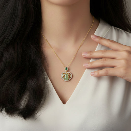 Silver Hetian Jade Calabash Gourd Auspicious Cloud Necklace