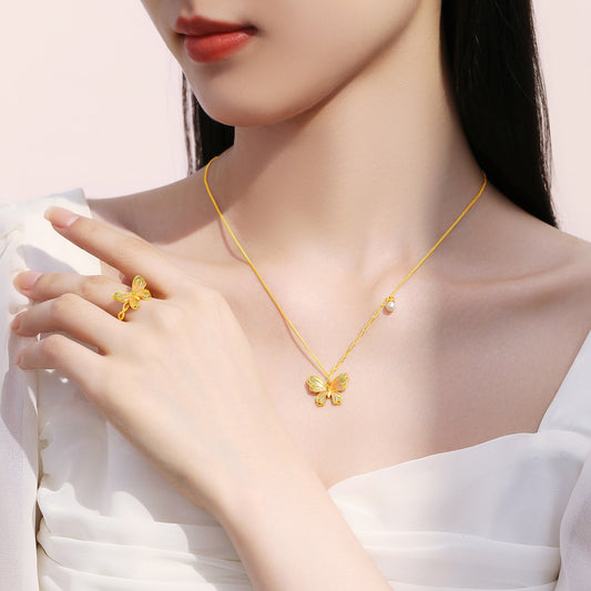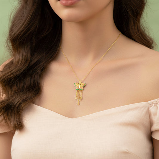 Silver Gold Plated Enamel Butterfly Tassel Necklace