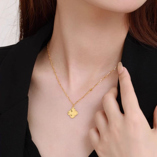 24K Gold Lucky Shining Clover Paperclip Chain Necklace