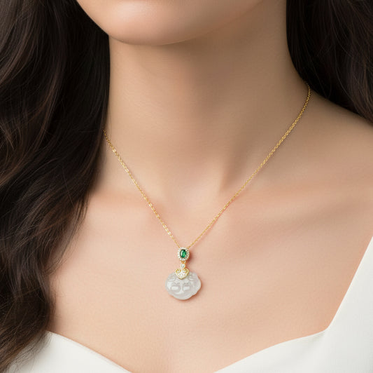 Silver Zircon Chalcedony Ruyi Calabash Gourd Necklace