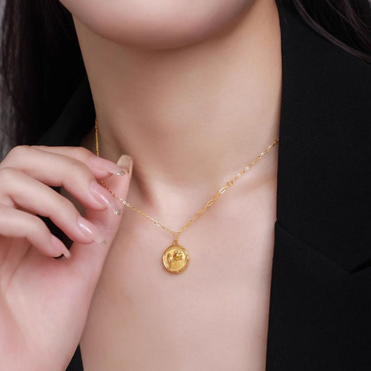 Silver Vintage Twelve Constellations Zodiac Signs Necklace