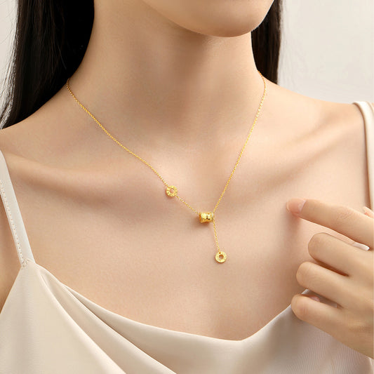 S925 Silver Zircon Double-sided Rotatable Lucky Clover Necklace