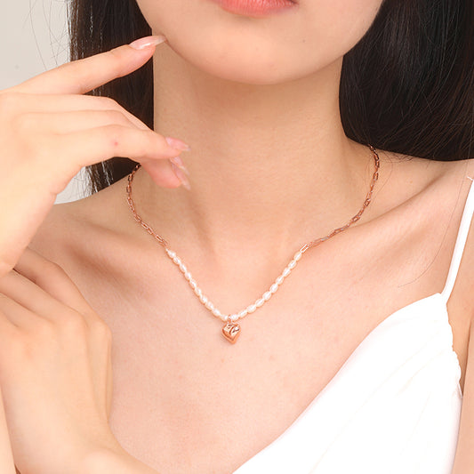 [Pre-sale] S925 Silver Pearl Rose Gold Heart Necklace