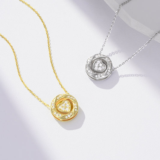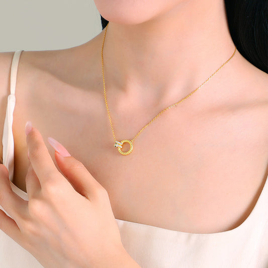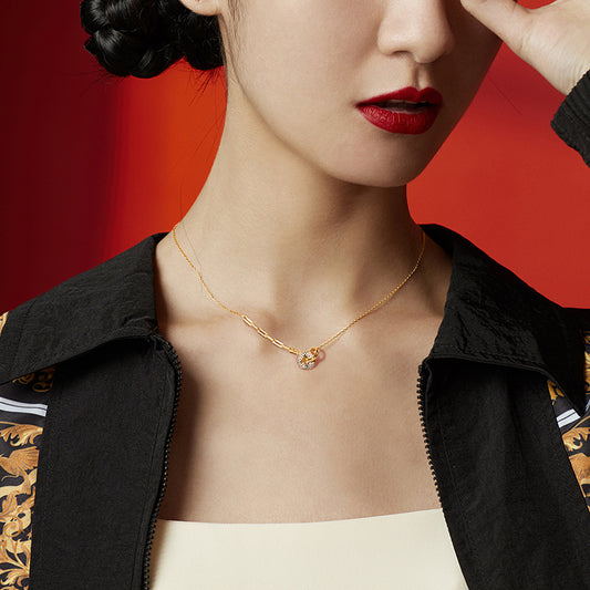 S925 Silver Zircon Golden Coin Interlocking Necklace