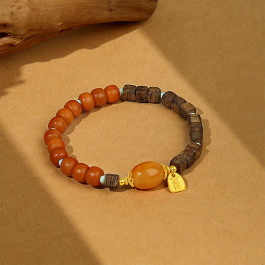 S925 Silver Ancient Chinese Style Amber Agarwood Beaded Bracelet