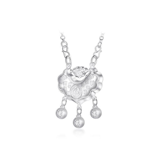 S990 Silver Newborn Baby Child Hundred Fu Ruyi Lock Necklace