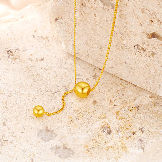 18K Gold Rose Gold Barrel and Bead Y Shape O-chain Necklace