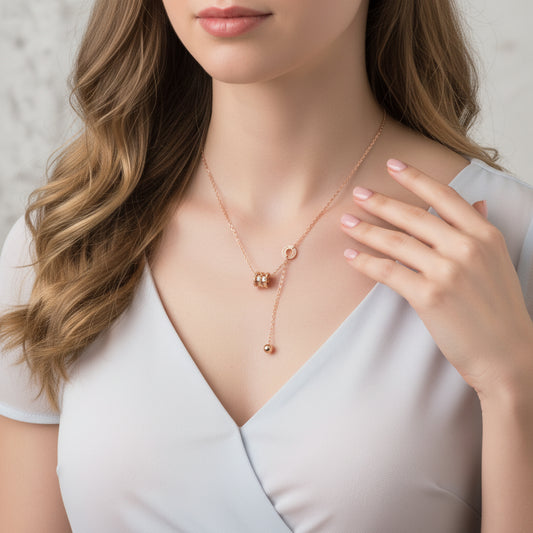 18K Gold Rose Gold Barrel and Bead Y Shape O-chain Necklace