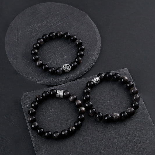 [Pre-sale] S925 Silver Obsidian Blessing Charm Beaded Bracelet