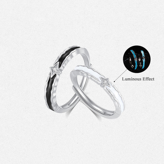 S925 Silver Luminous Enamel Black White Star Couples Rings