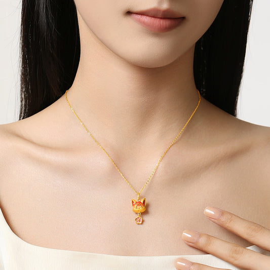 First Series 24K Gold Luminous Enamel Peach Blossom Fox Pendant