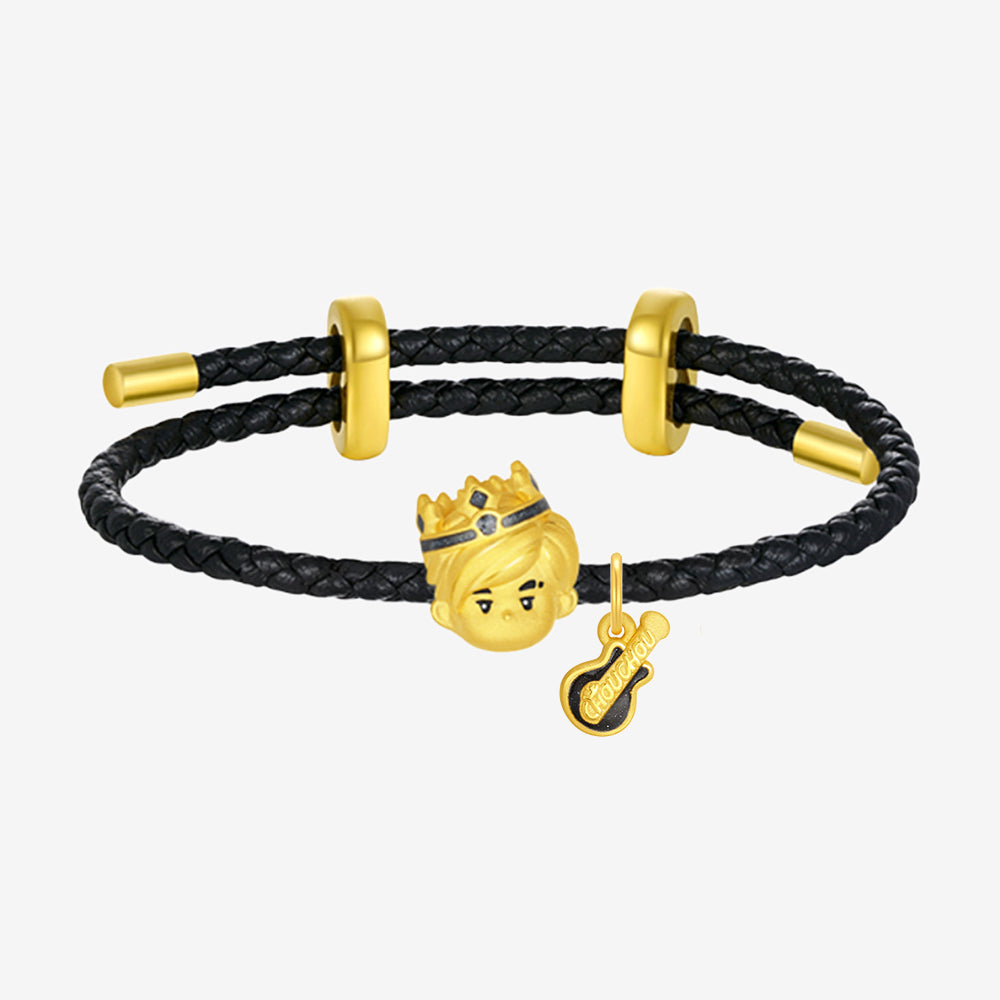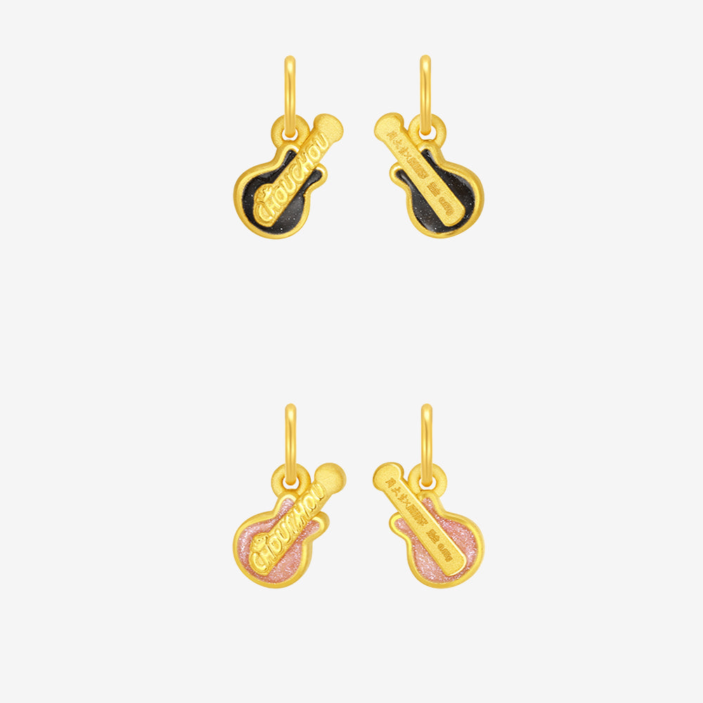 🎵Accessorize with this playful 24K gold charm set, featuring a cartoon likeness of Taiwanese singer Jay Chou. Its design elements include stars, playing card symbols, and a guitar. Show off your love of music while adding a quirky touch to any outfit.