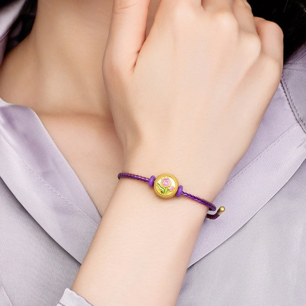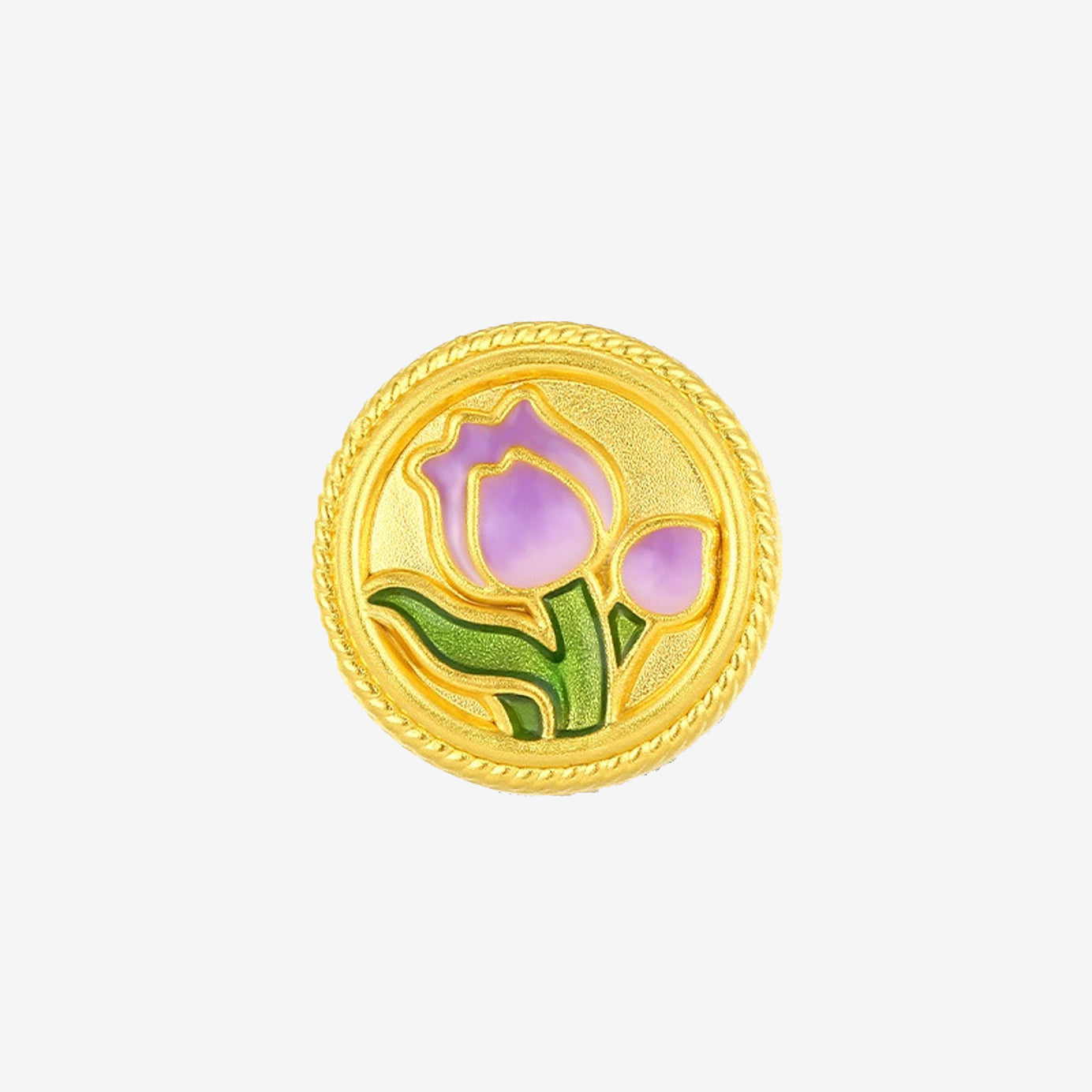 Monet Garden Series 24K Gold Enamel Tulip Round Pendant