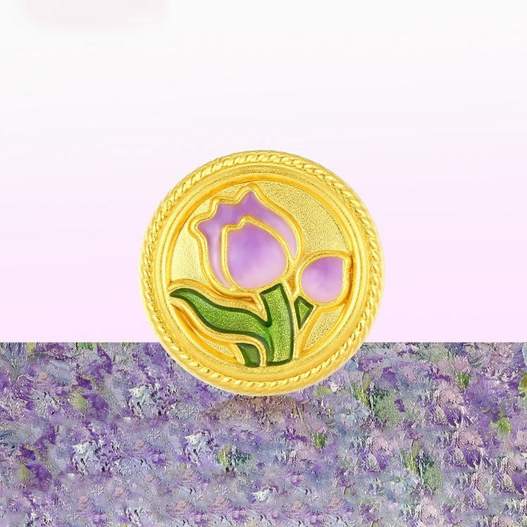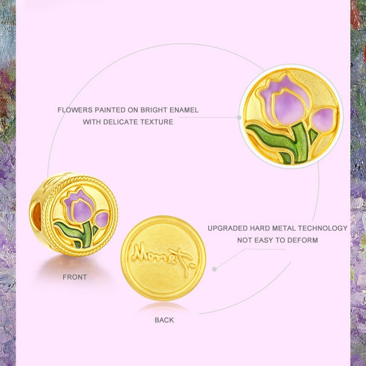 The design inspiration is based on the tulip elements of the garden in the painting The Artist's Garden at Giverny to refine the vivid and natural beauty of the tulips in the garden. Brightly colored enamel embellishes the tulip, making it more sweet and romantic.