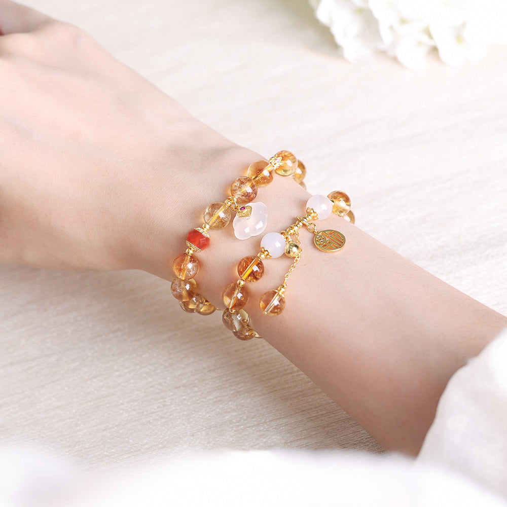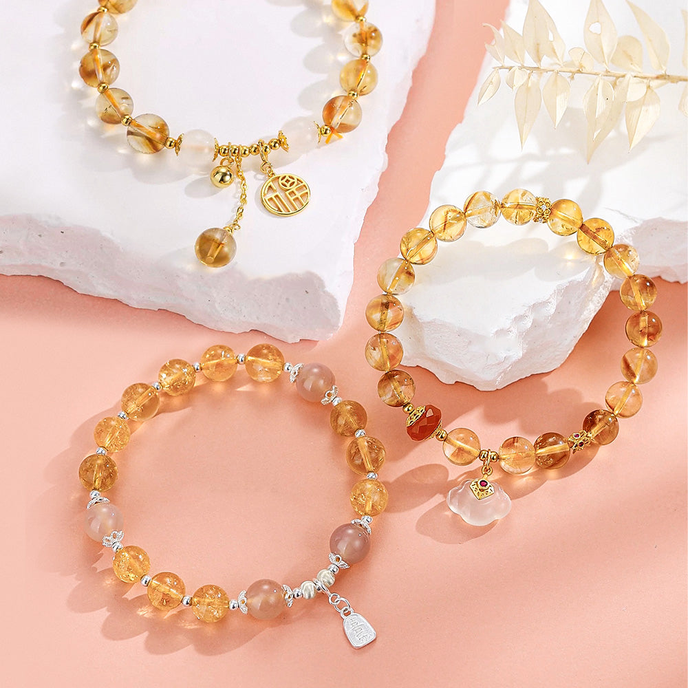 S925 Silver Auspicious Cloud Citrine Beaded Bracelet