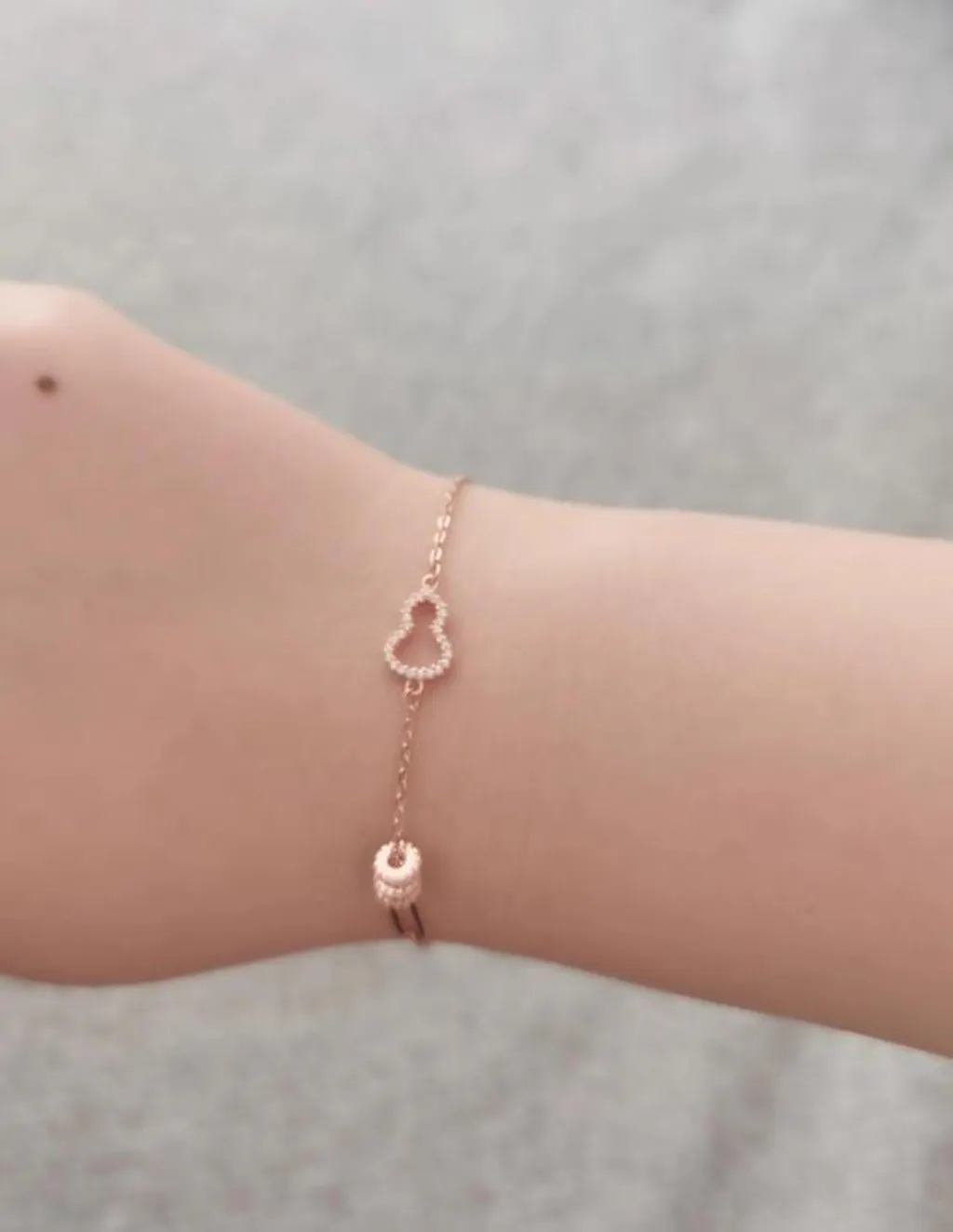 This silver gourd-shaped bracelet blends a classic waist design with traditional gourd elements, showcasing exquisite Eastern aesthetics. Selected zircon stones adorn the design, shimmering with a warm luster and adding an elegant touch to the wrist.