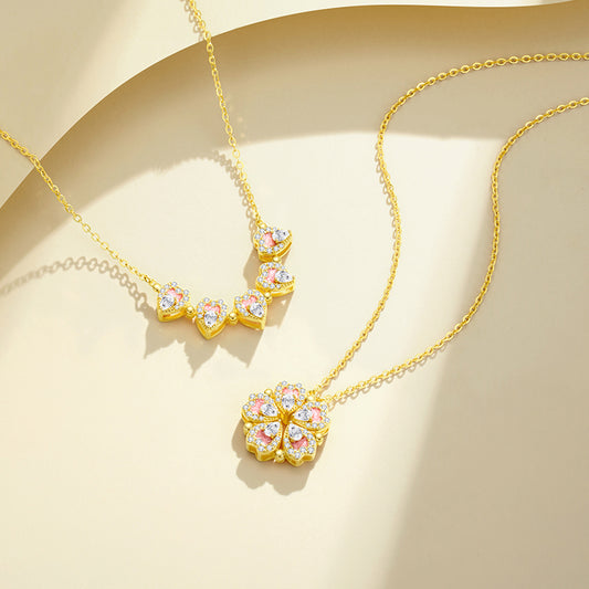 S925 Silver Transformable Peach Blossom Heart Necklace