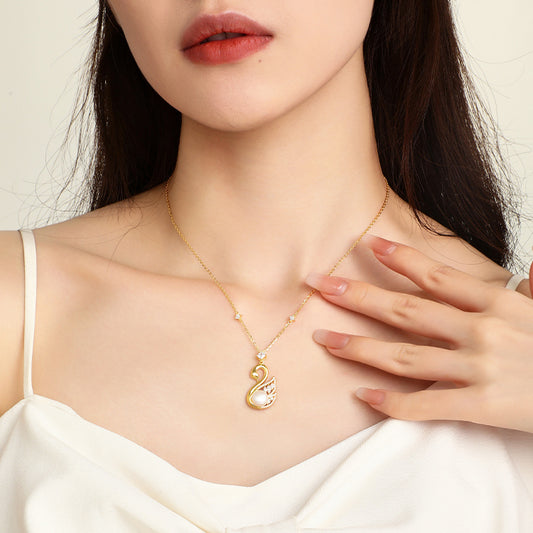 Gold Plated Silver Pearl Zircon Golden Swan Necklace Earrings