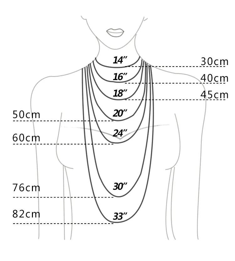 You can know the position of the neck where the necklace of the corresponding length (cm or inch) is located through the diagram.