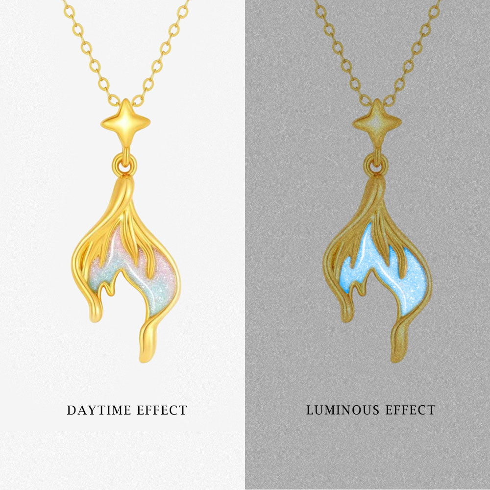 24K Gold Enamel Luminous Mermaid Tail Pendant
