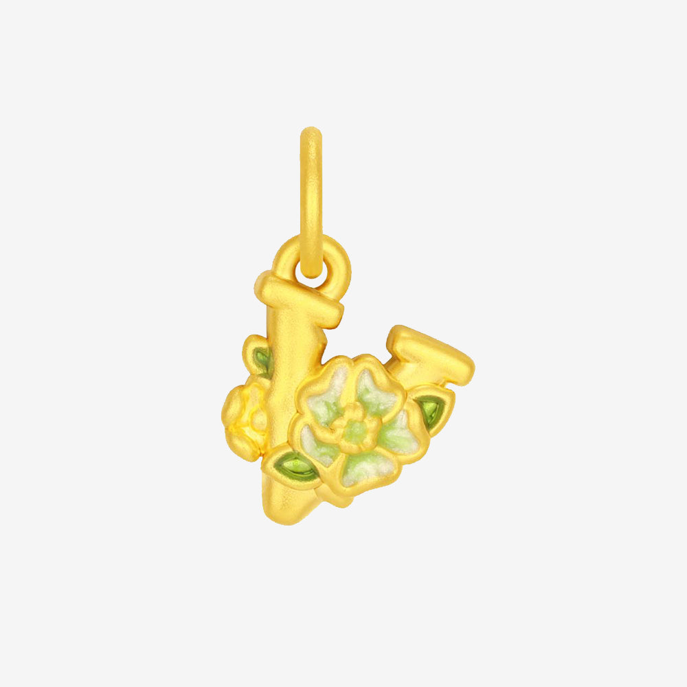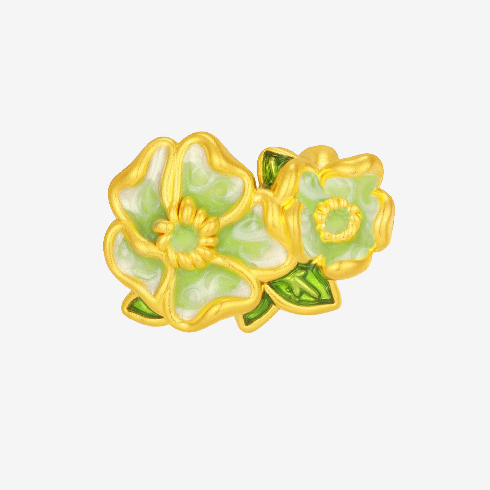 Blazing Van Gogh Series 24K Gold Enamel Green Blue Flower Series Charm