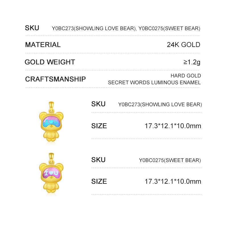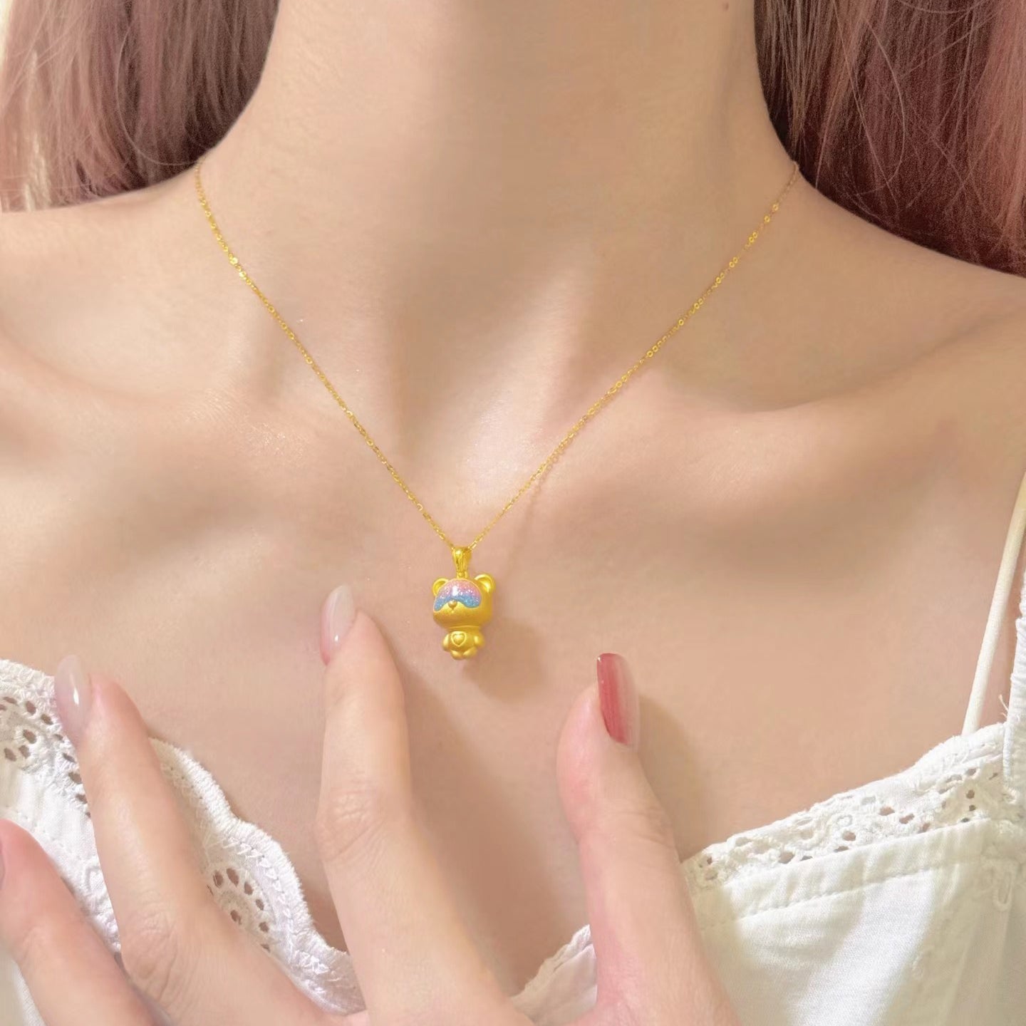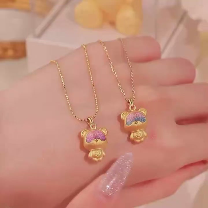 First Series 24K Gold Secret Words Luminous Enamel Sweet Bear Pendant