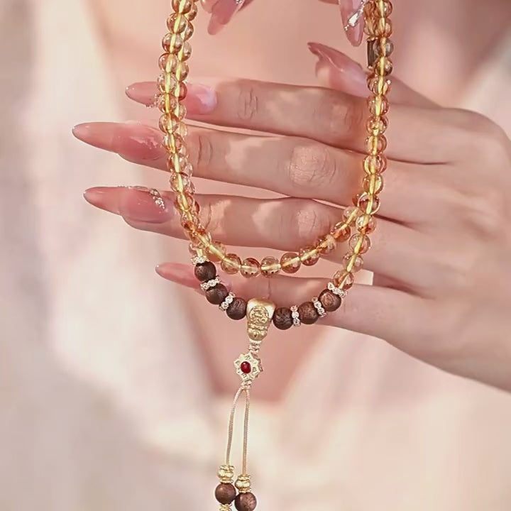 S925 Silver Lotus Calabash Gourd Agarwood Citrine Long Beaded Bracelet