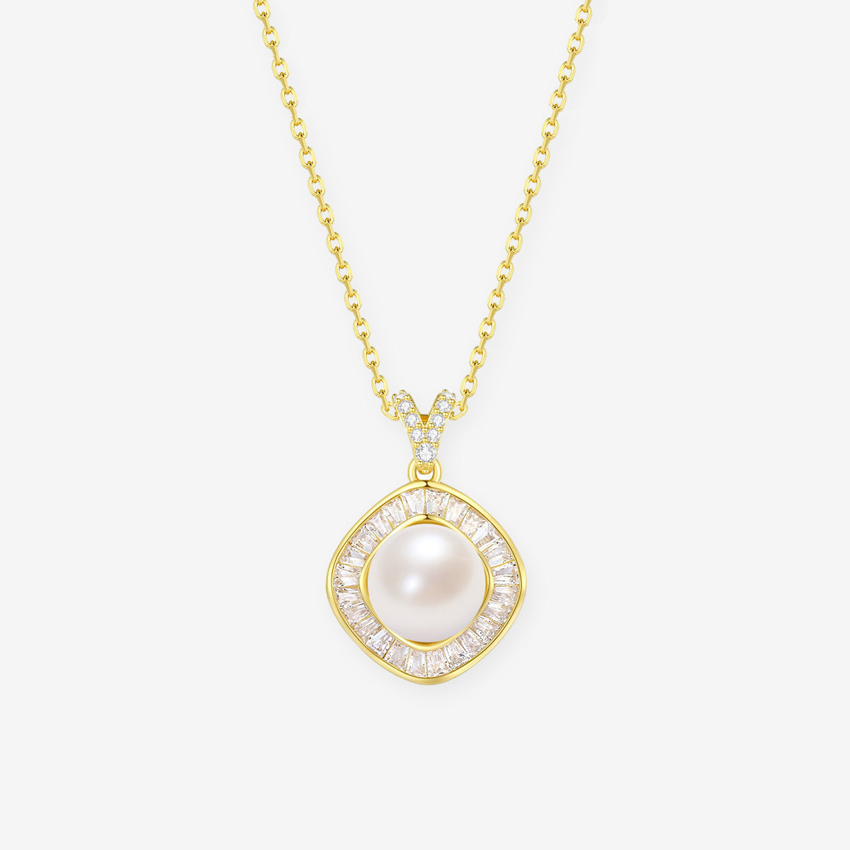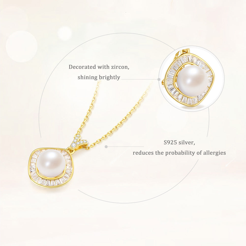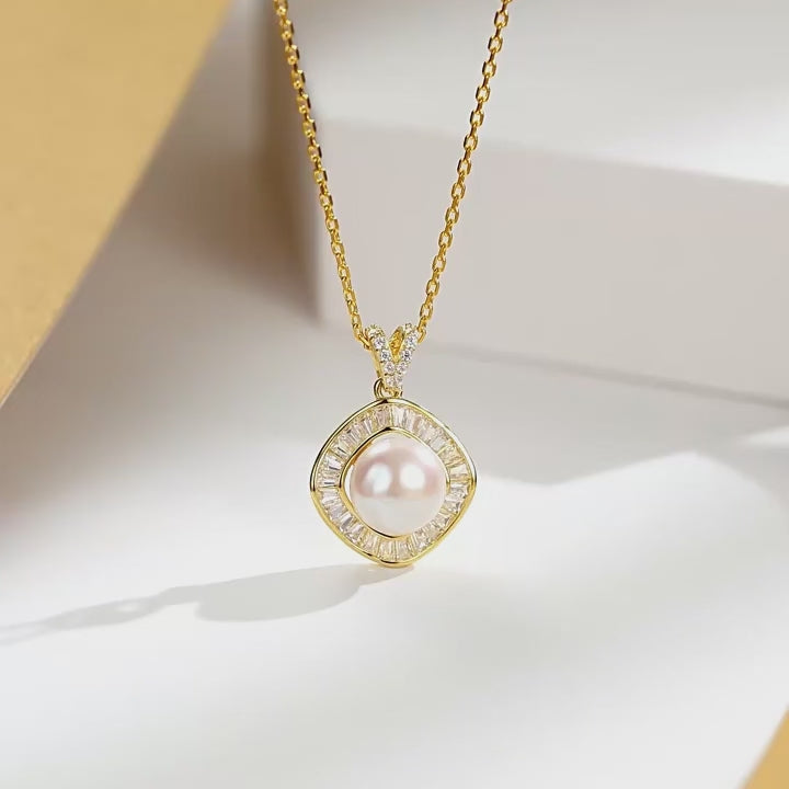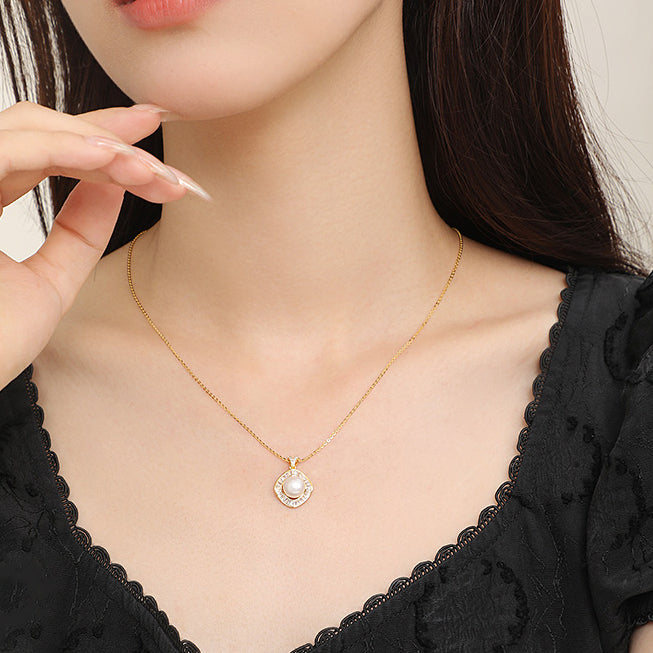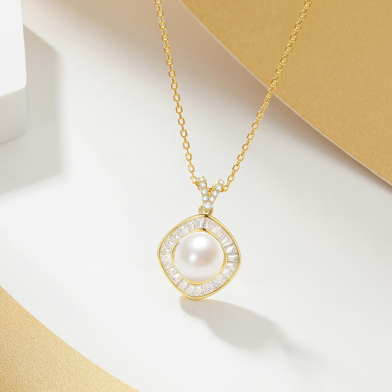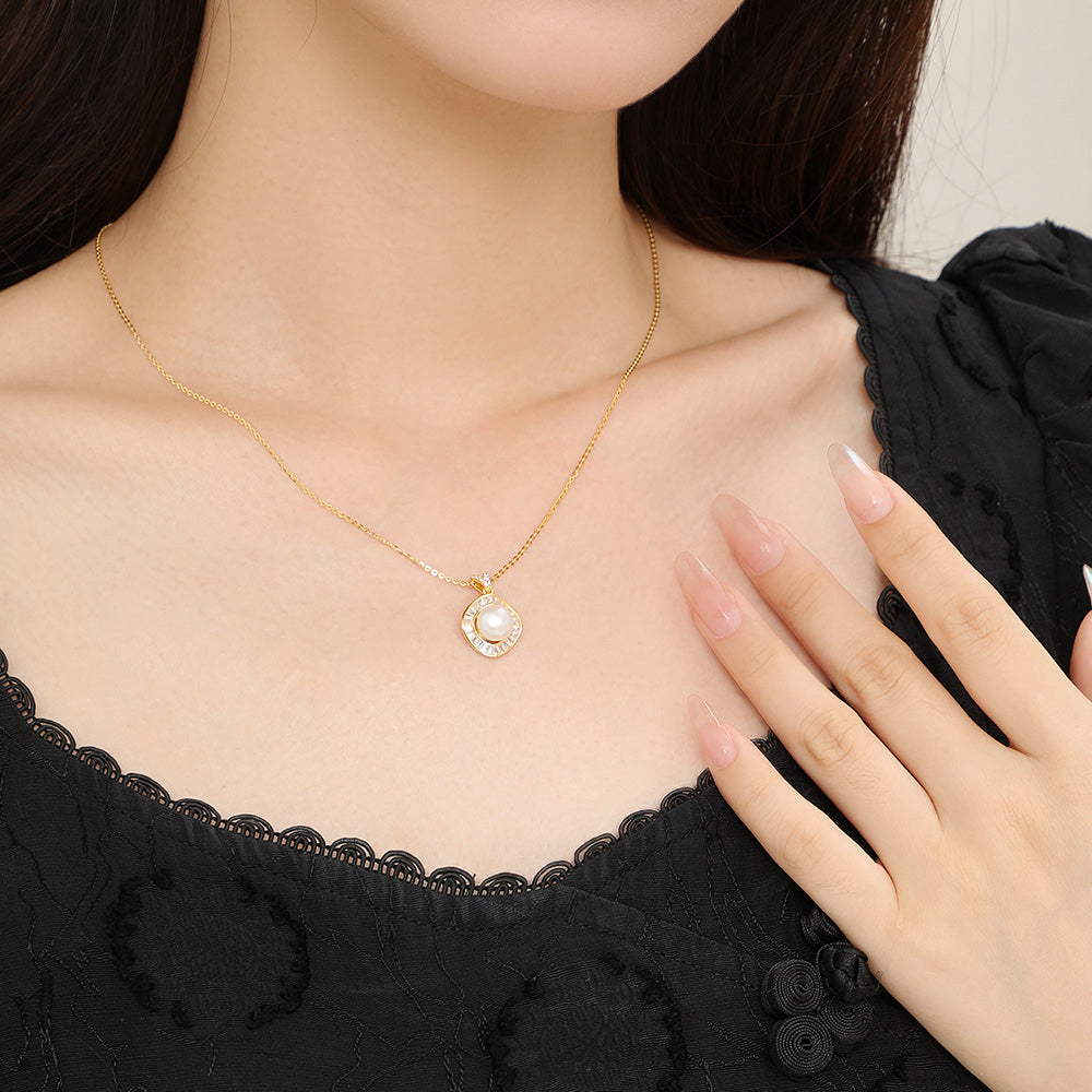 [Pre-sale] S925 Silver Zircon Pearl Geometric Square Necklace