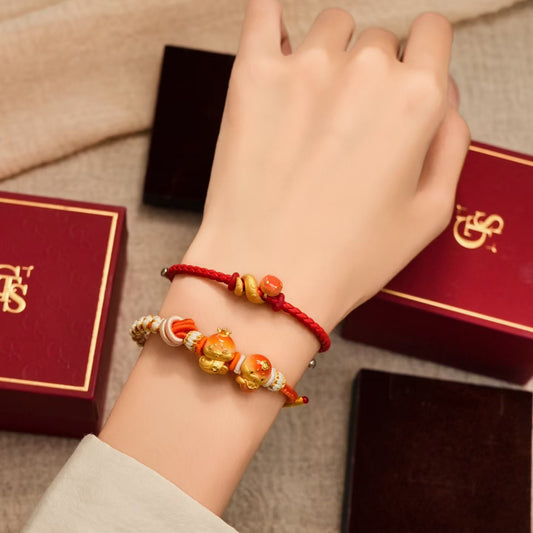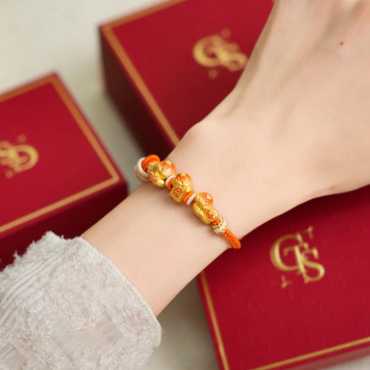 24K Gold Wufu Lucky Five Snakes Charms Bracelet
