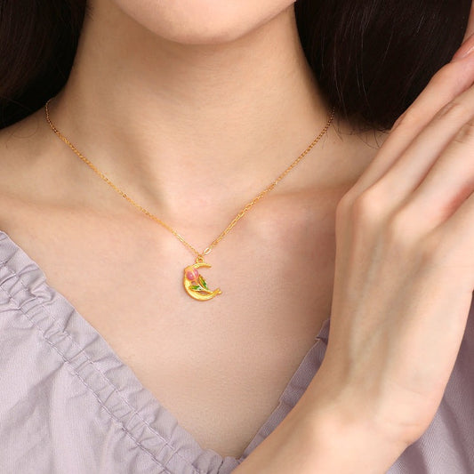 Monet Garden Series 24K Gold Tulip and Half Moon Necklace