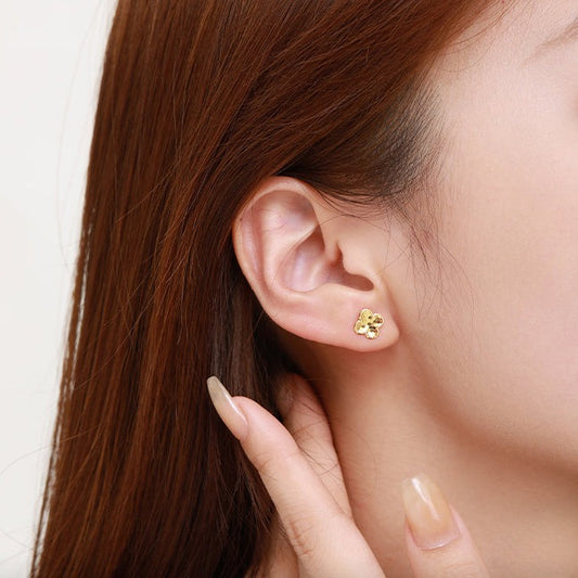 BLOVE 24K Gold Lucky Four Leaf Clover Hollow Minimalist Earrings