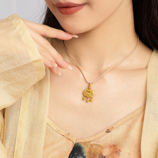24K Gold Fortune Ruyi Lock and Bells Necklace