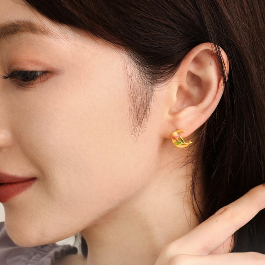 Monet Garden Series 24K Gold Tulip and Half Moon Earrings