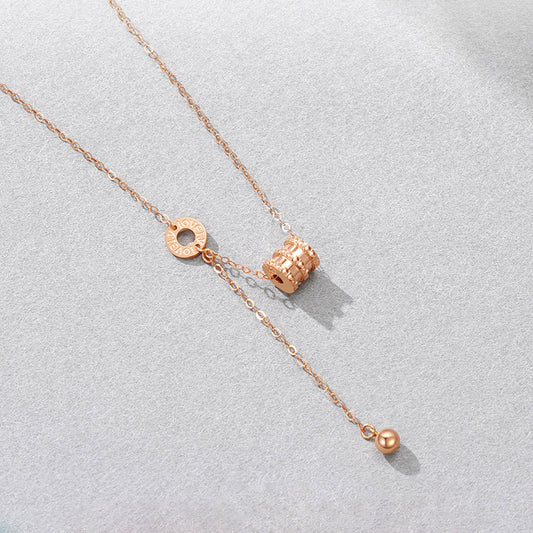 18K Gold Rose Gold Barrel and Bead Y Shape O-chain Necklace
