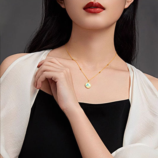 A Grand Panorama of Rivers and Mountains Series 24K Gold Enamel Square Round Tag Couple Necklaces