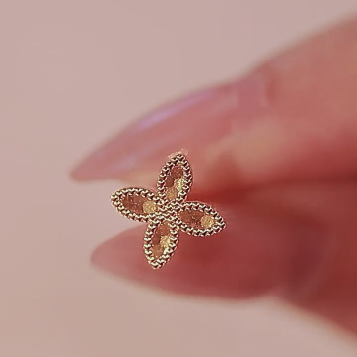 🍀Experience the luxury of our 18K Gold Lucky Clover Shining Earrings. These exquisite earrings are designed with a unique Millegrain technique and a scale-like pattern that enhances the radiance of the 18K gold. Adorn yourself with sophistication and be the center of attention.