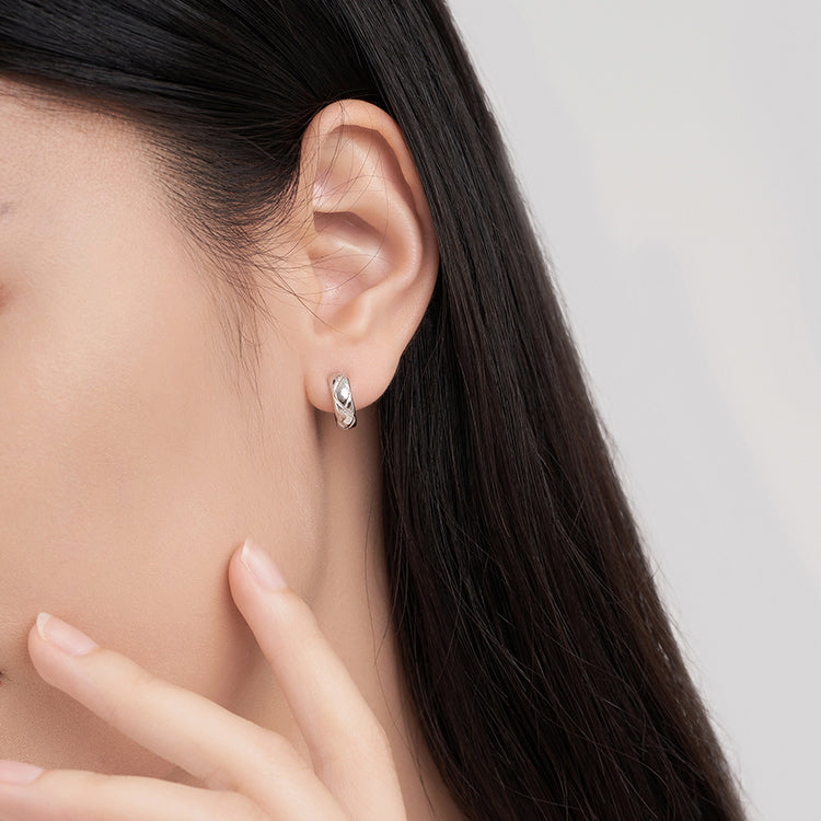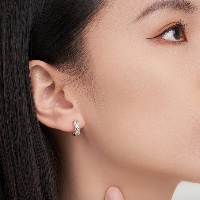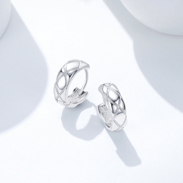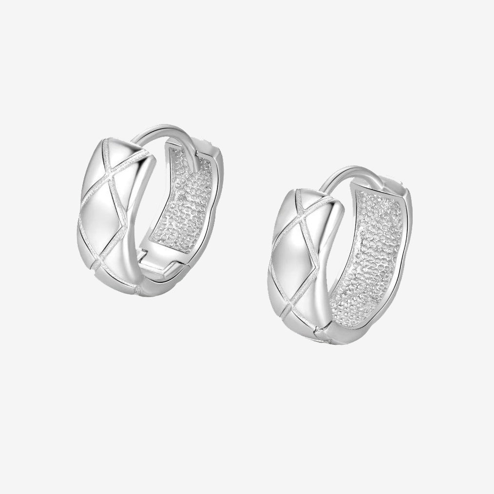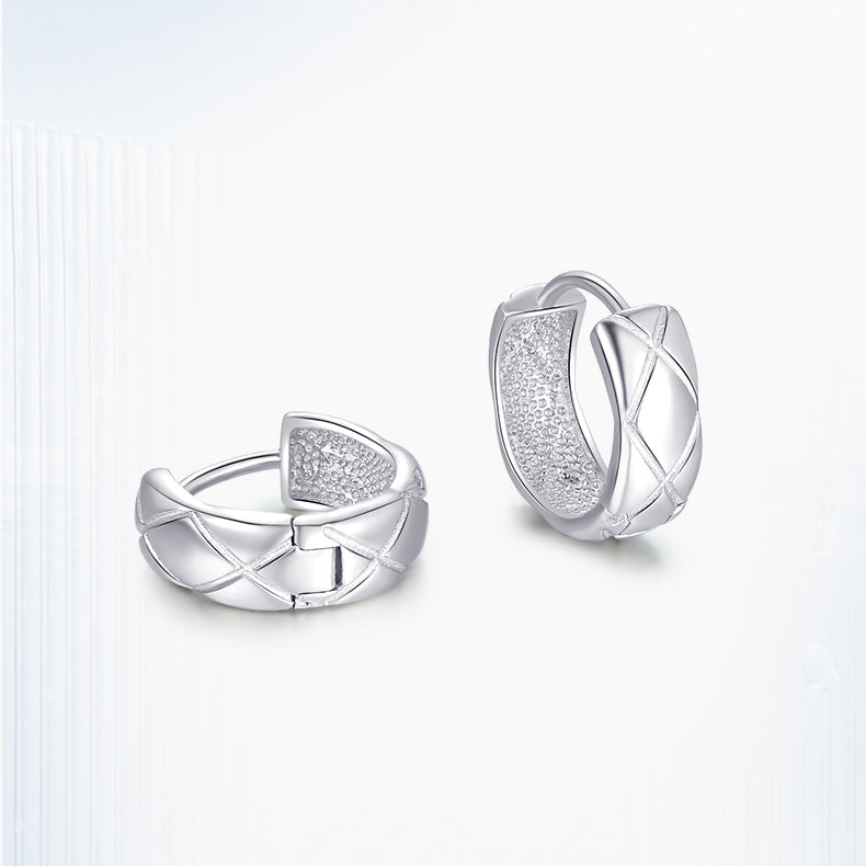Pt950 Platinum Diamond Pattern Lozenge Huggie Earrings