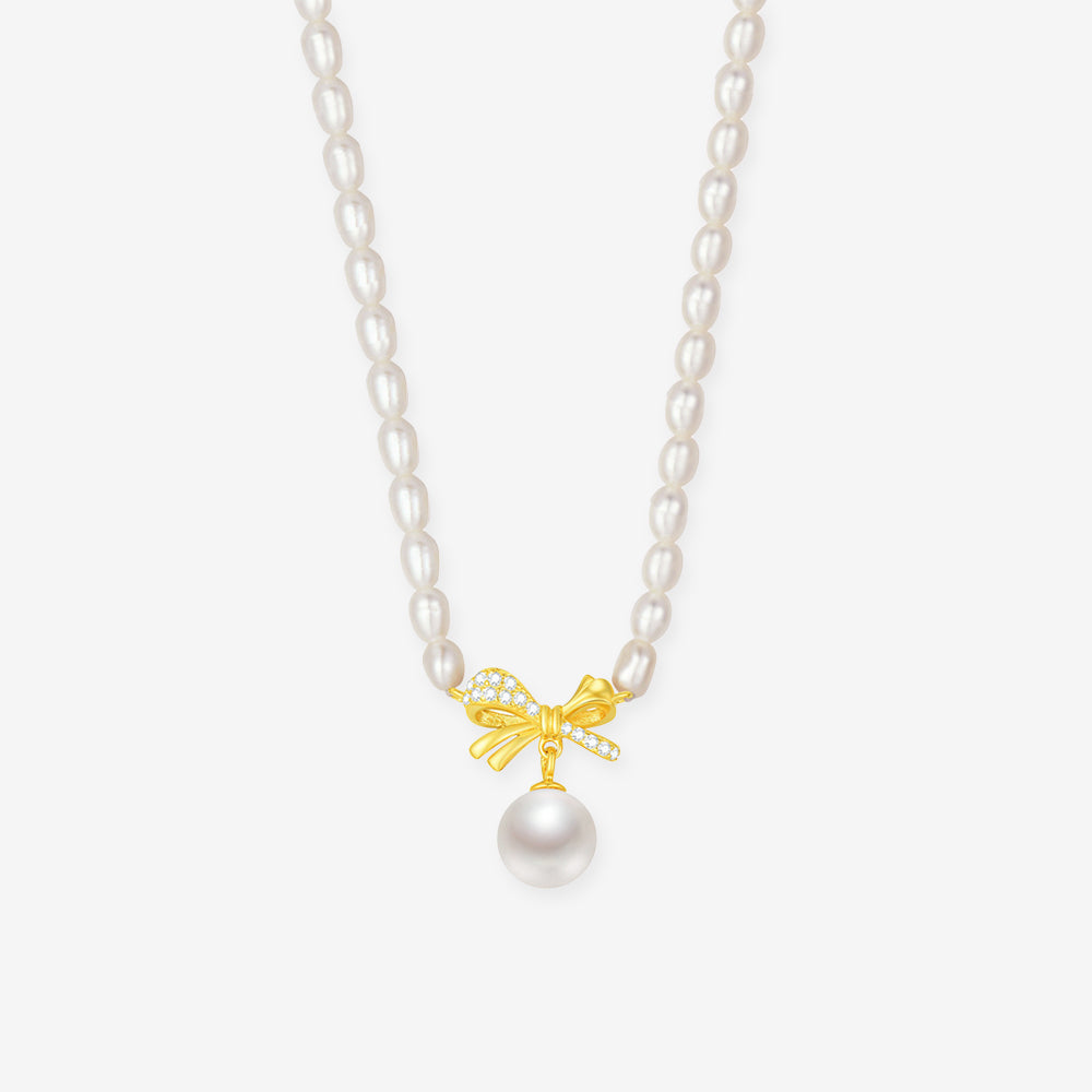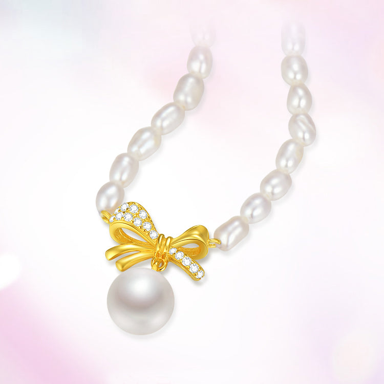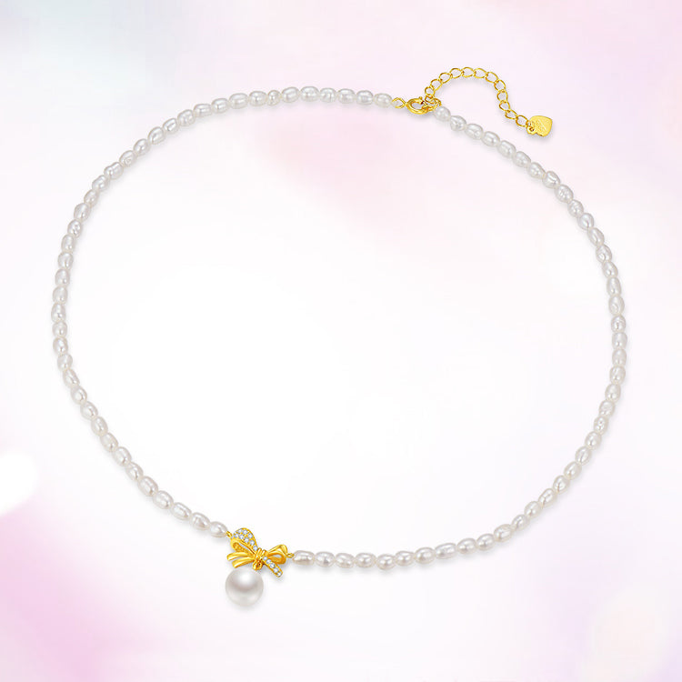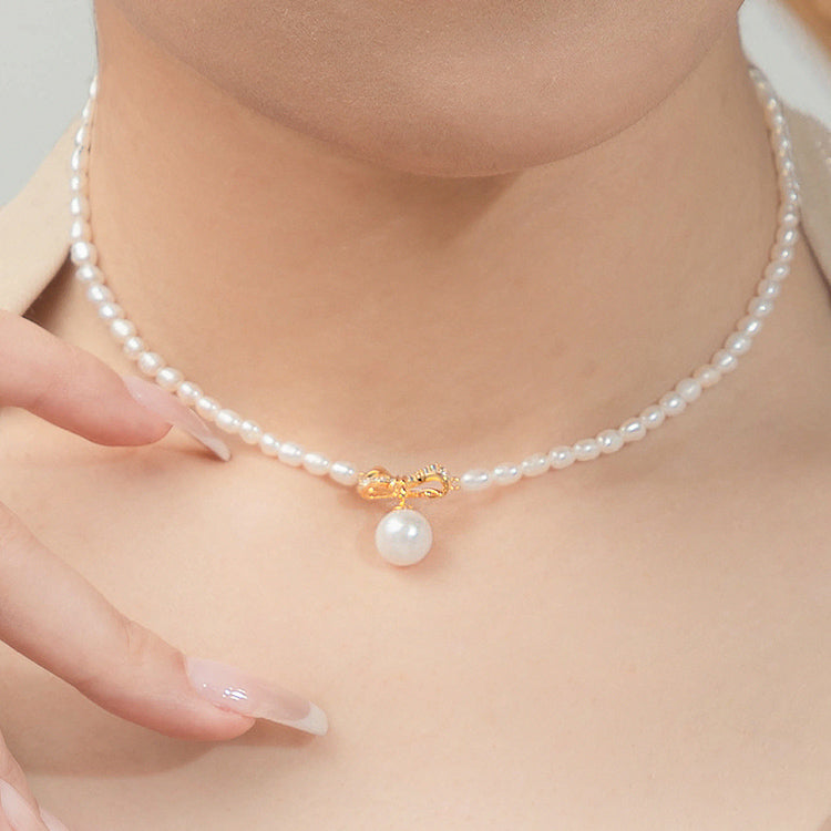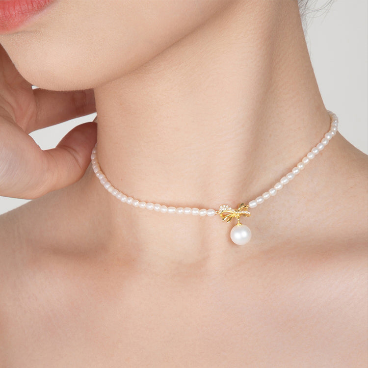 [Pre-sale] S925 Silver Pearl Golden Bow Knot Choker Necklace