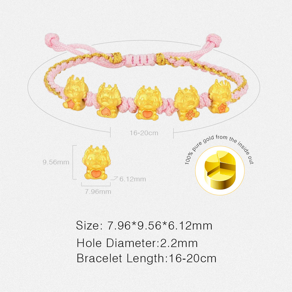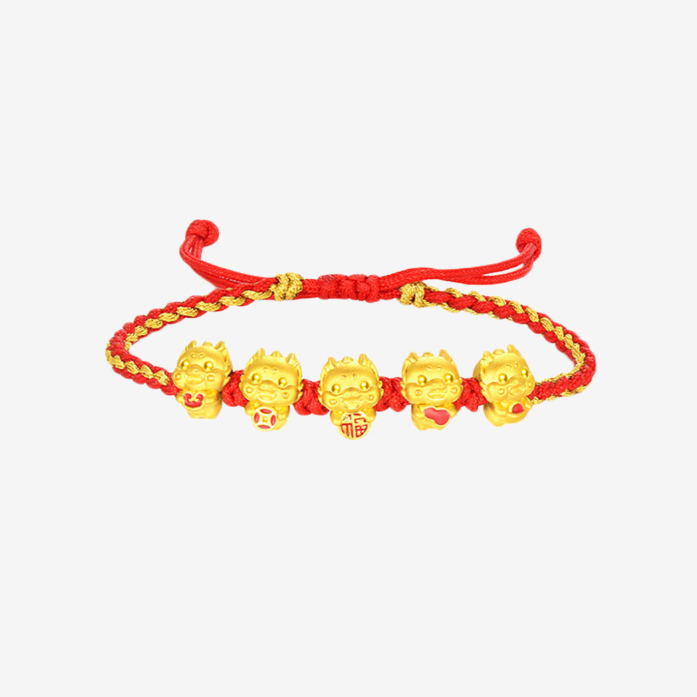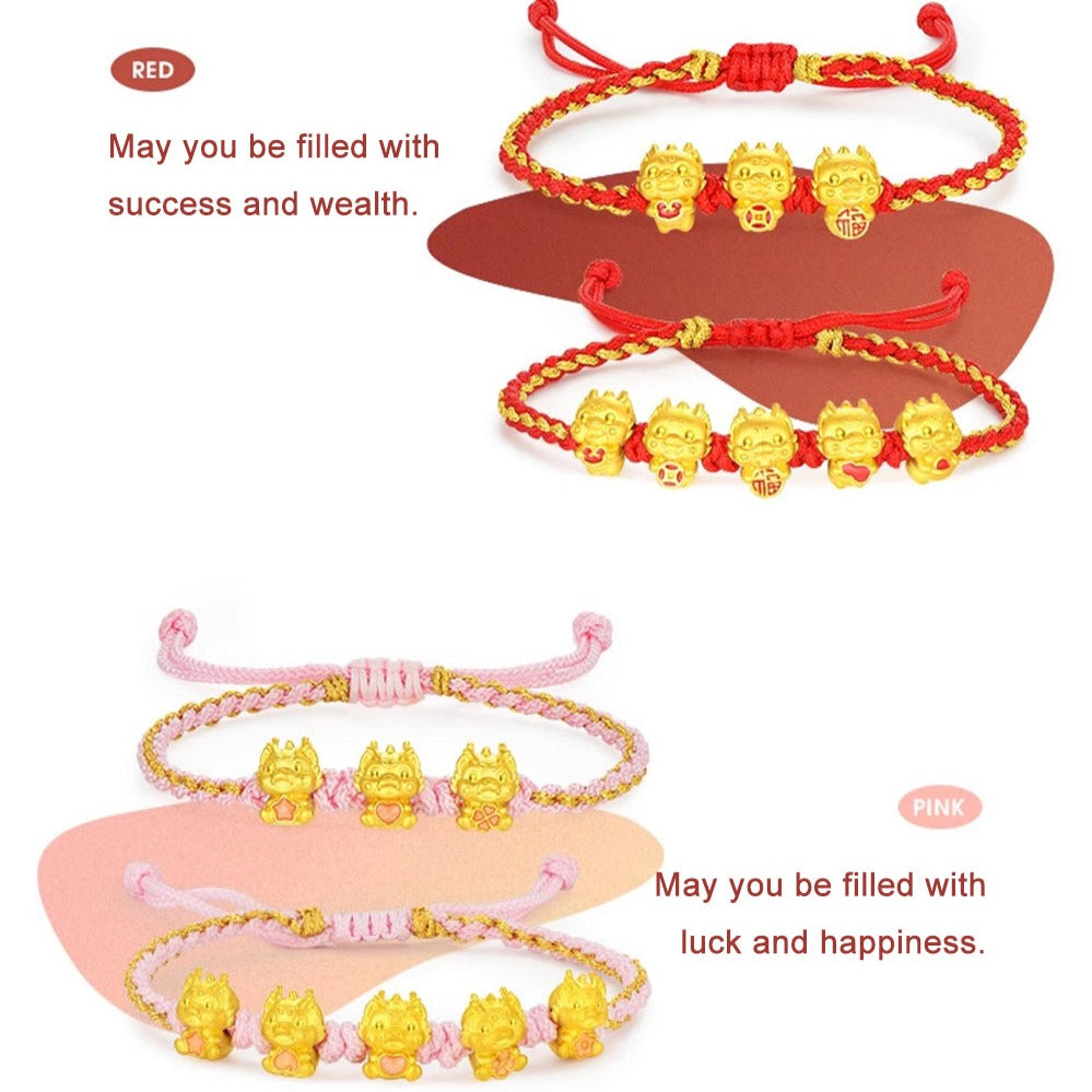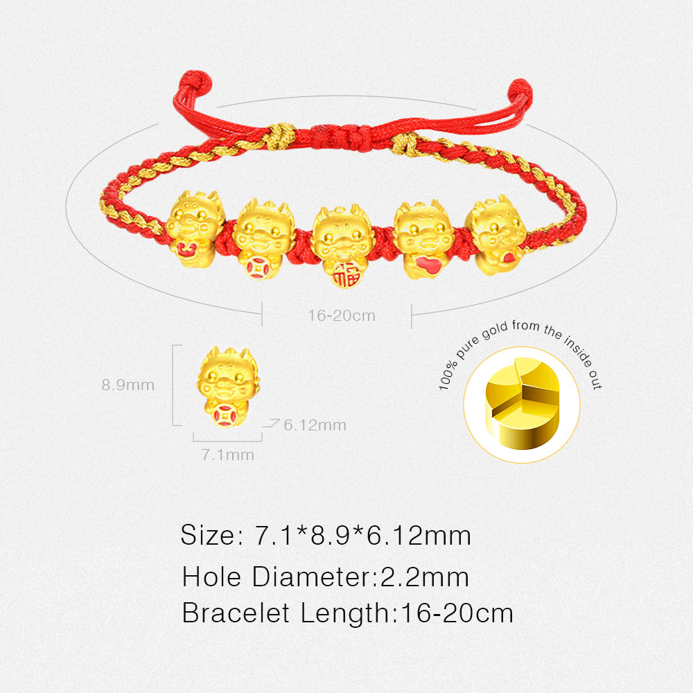 24K Gold Wufu Lucky Dragon Charms Bracelet