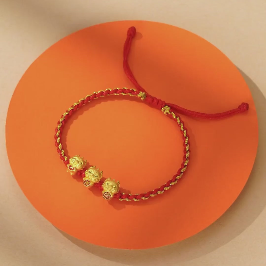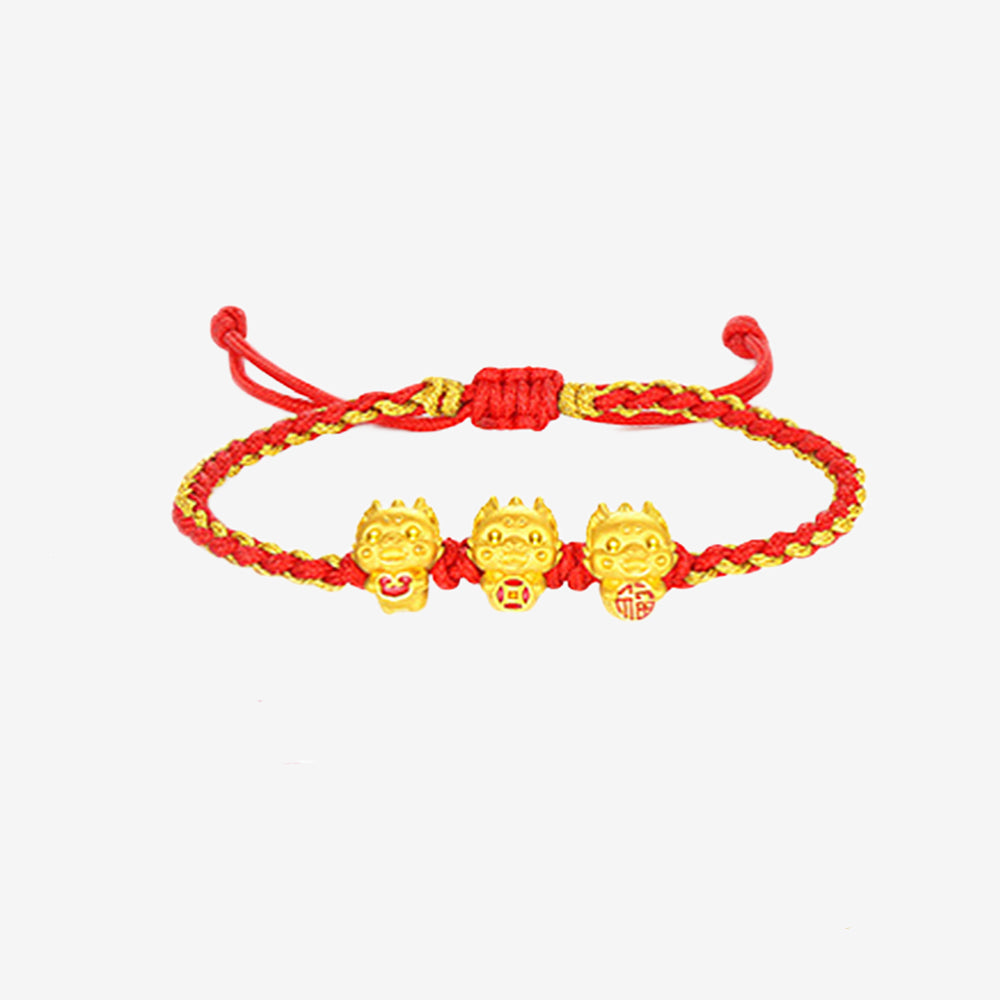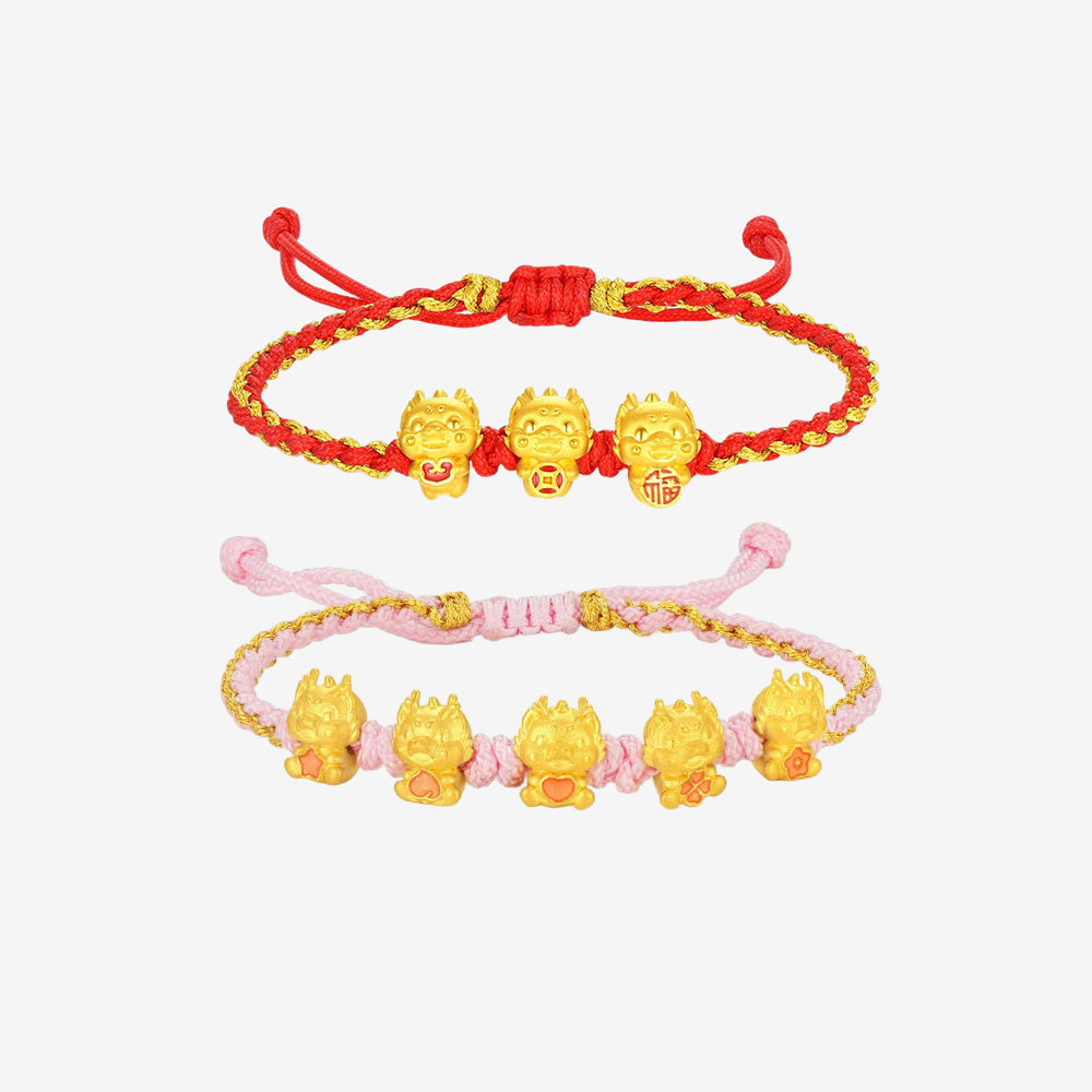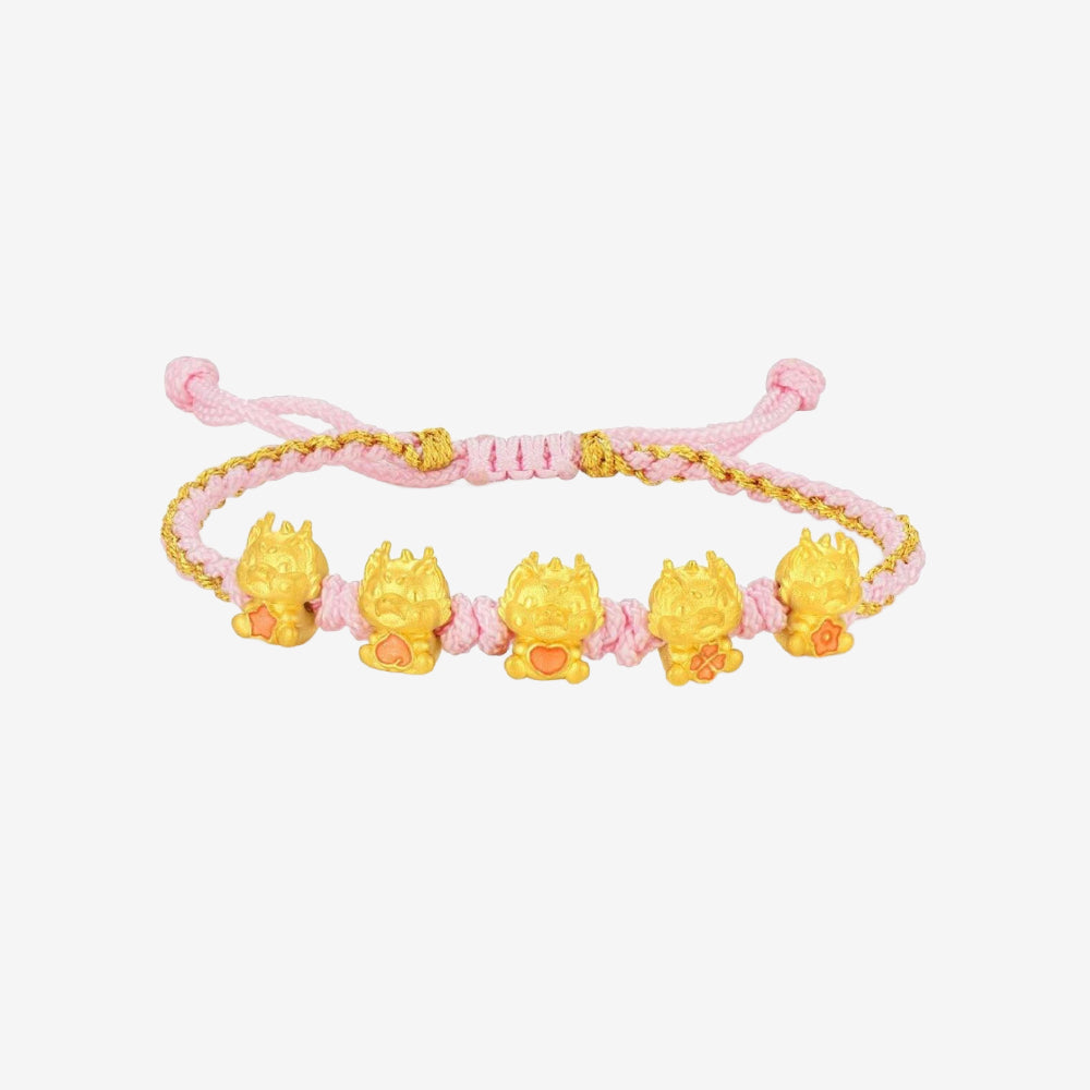 24K Gold Wufu Lucky Dragon Charms Bracelet